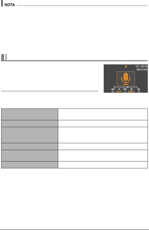 • Você pode usar [8] (DISP) durante a gravação de áudio para ativar ou desativar o