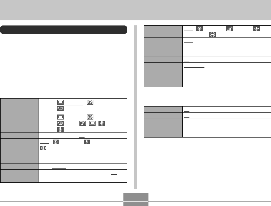 The settings that are underlined in the following table are
