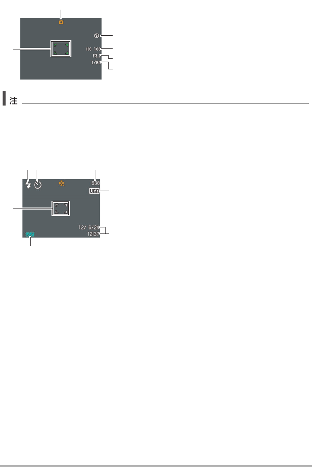 • 如果当前的光圈、快门速度、ISO敏感度或自动曝光设定错误,则半按快门钮时设定