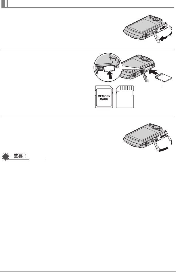 • 如果卡槽内进入水或任何异物,请立即关闭相机电源,取出电池,然后与您的零售