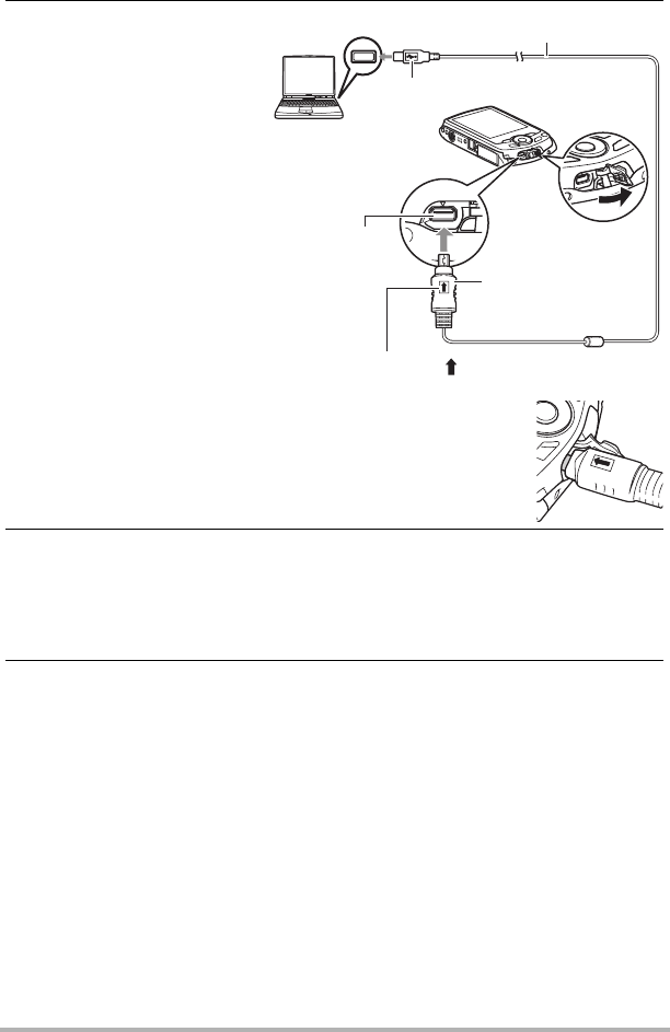 确保USB电缆插头上的 标记朝向镜头侧,然后将电