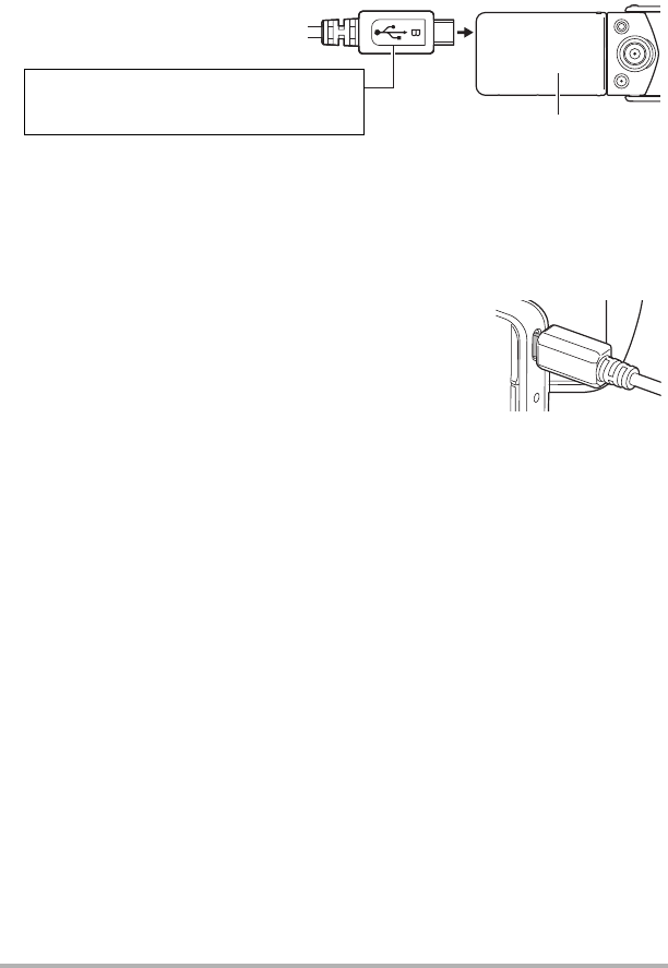 • USB 케이블을 카메라에 연결할 때 케이블 커넥터와 모니터 화면 패널이 아래 그림과 같