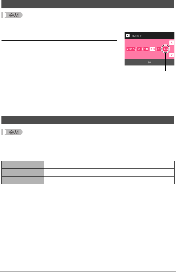 • 12시간 방식과 24시간 방식을 전환하려면 12/24시