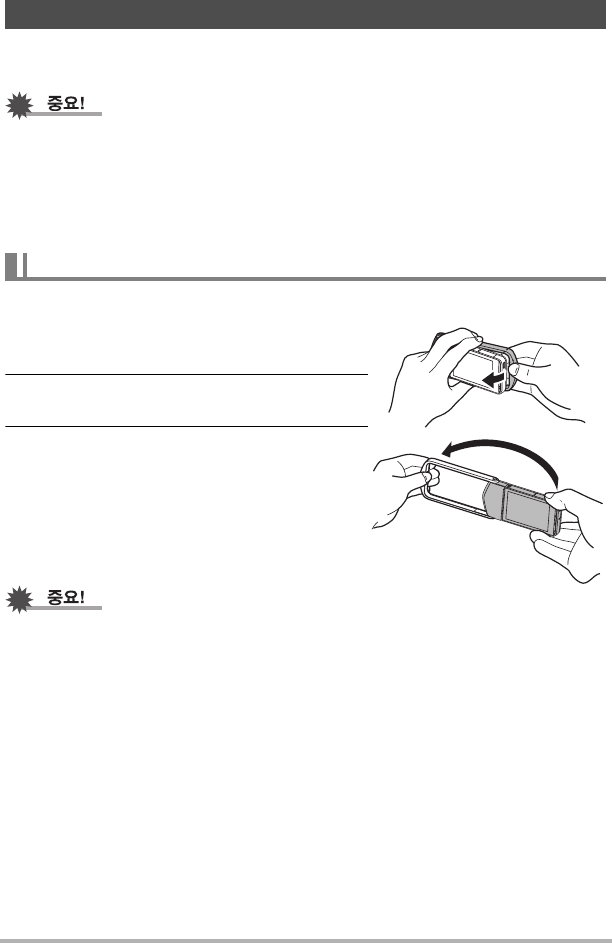 • 모니터 화면 패널을 회전시킨 상태에서는 프레임을 열거나 닫지 마십시오. 그렇게 할 경