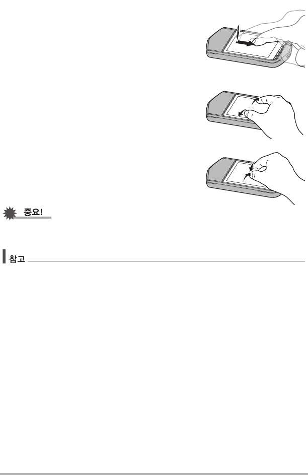 끝이 뾰족하거나 딱딱한 물건을 사용해 화면 조작을 하지 마십시오. 화면이 손상될 우려