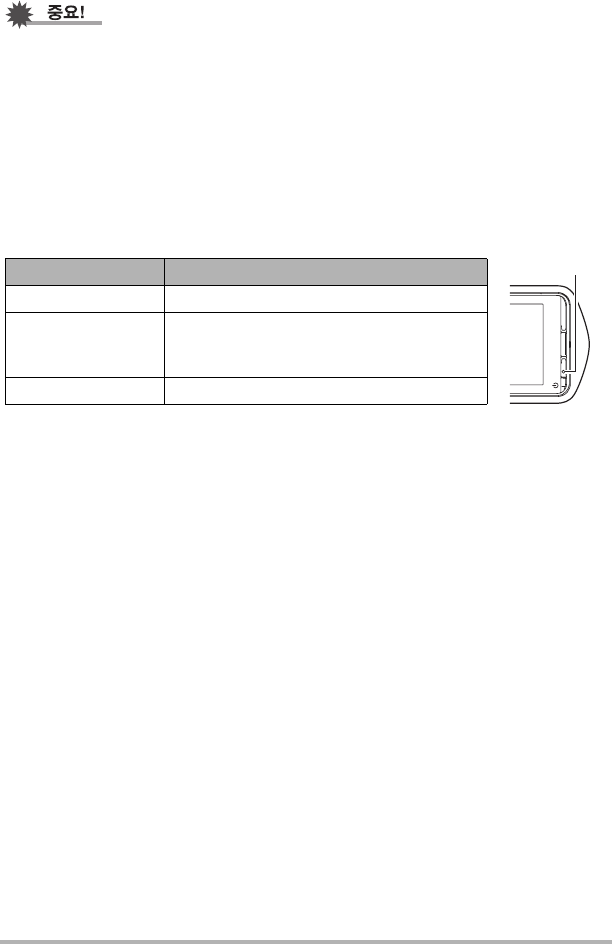 색 발광으로 표시됩니다. 전지를 매우 오랫동안 사용하지 않은 경우에는 약 60분 후에