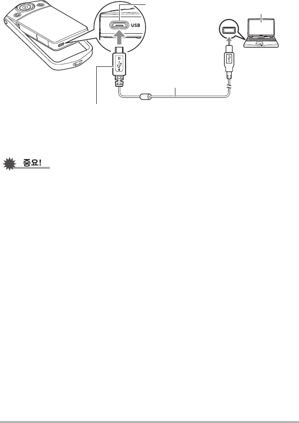 • 컴퓨터에 USB를 연결해서 충전하는 도중 카메라의 전원을 켜면 카메라가 컴퓨터와의