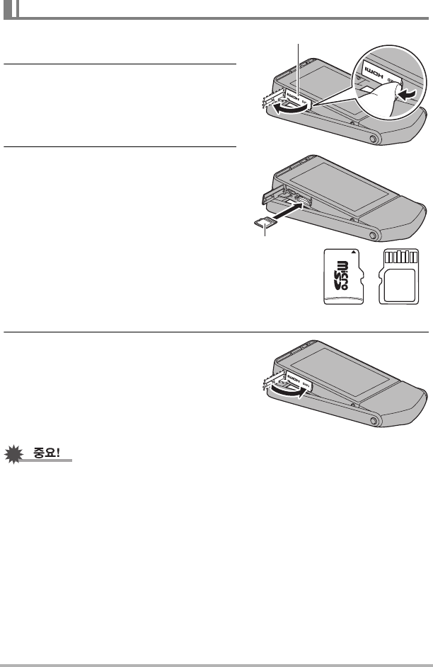 • 카드 슬롯에 물이나 그 밖의 이물질이 들어갔을 때에는 즉시 카메라 전원을 끄고 판매점