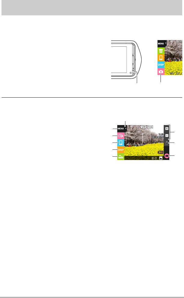 • 카메라가 재생모드일 때는 "r" (REC)를