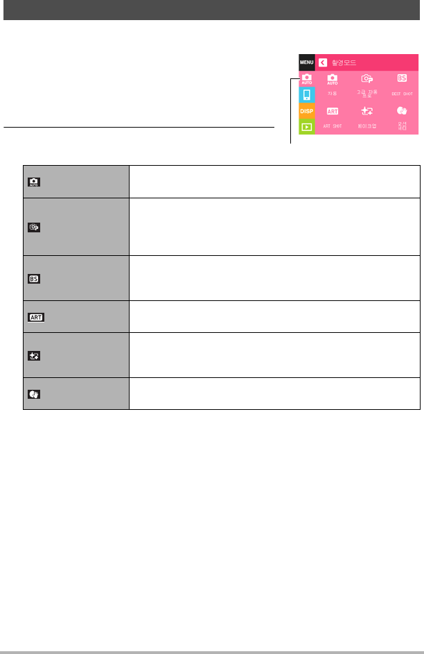 표준 자동 촬영 모드. 촬영에 일반적으로 사용되는 모드입니