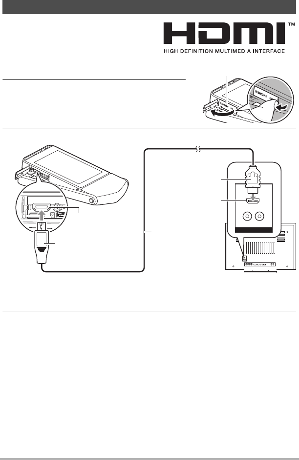 3. 카메라 전원을 끄고 상용 HDMI 케이블을 사용해 카메라를 TV에 연결합니다.