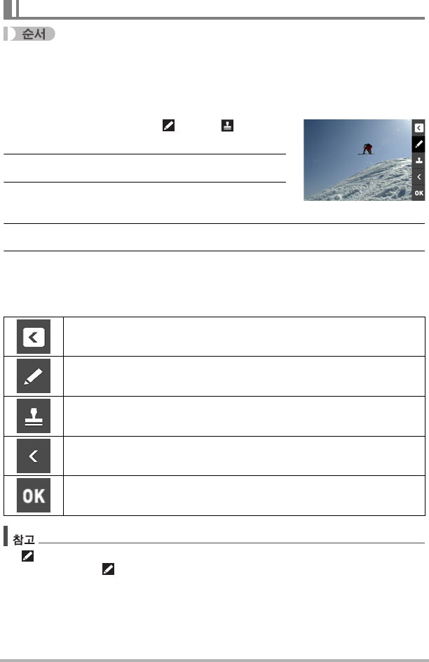 이 기능을 사용하면 촬영된 스냅사진에 그림을 그리거나, 문자를 기입하거나, 정보를 스탬
