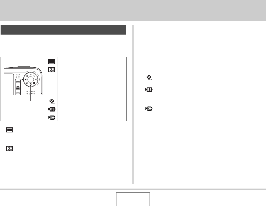 本CASIO數位相機具有⼋種拍攝⽅式, 各種拍攝⽅式說明如下。