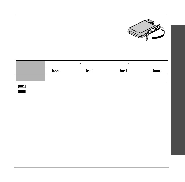 電池が消耗すると、液晶モニターに表示される電池残量表示が下記のように変化します。
