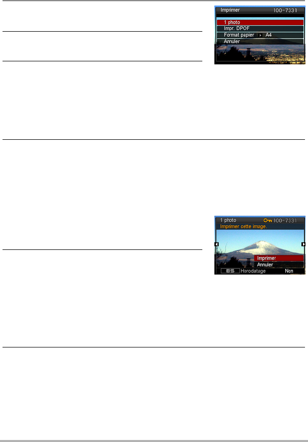 Impr. DPOF :Imprime plusieurs photos. Sélectionnez l’option, puis appuyez sur