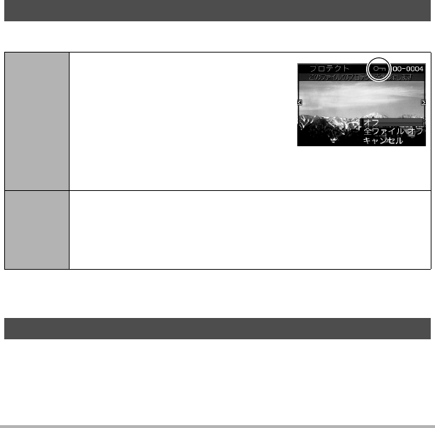 • プロテクトをかけたファイルでも、フォーマット操作(140ページ)を行うと、消去されて