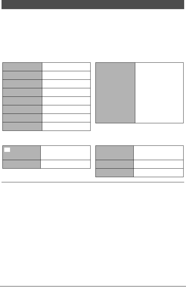 Les tableaux suivants montrent les réglages par défaut des paramètres des menus