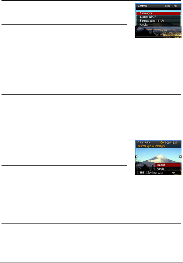 fotocamera farà riapparire lo stato di stampa. Il menu di stampa riapparità al