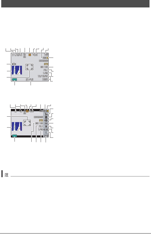 • 此处的示范画面用来向您展示各种方式下显示屏上出现的所有指示符和数字的位