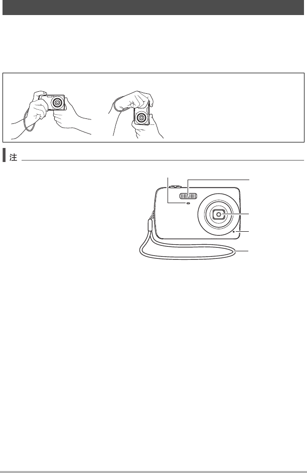 如图所示握持相机,并在拍摄时将双臂紧靠在身侧,使其保持静止不动。