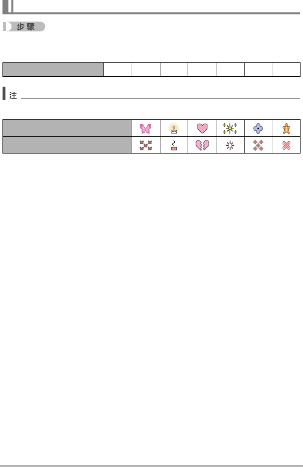 的七种不同形状(包括心形)。