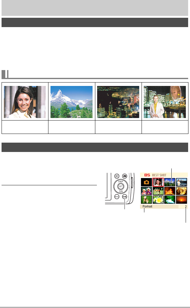 BEST SHOT est un menu comportant un ensemble de « scènes » correspondant à