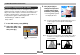 OTHER RECORDING FUNCTIONS 3. Use [왖] and [왔] to Using the Movie Mode You can record movies with audio, up to 60 seconds long. select “ Movie”, and then press [SET]. • File Format: AVI AVI format conforms to the Motion JPEG format promoted by the Open DML Group. • “Remaining capacity” shows how many 60second movies can still be recorded to memory. Remaining capacity • Image Size: 320 x 240 pixels • Movie File Size: Approximately 160KB/second.