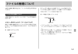 ファイルの管理について 4. 【왗】 【왘】 でお気に入りフォルダに登録したいファイルを選 お気に入りフォルダのファイルを表示する びます。 5. 【왖】 【왔】で“登録”を選び、【SET】を押します。 • 内蔵メモリー内のお気に入りフォルダにファイルを登録し ます。 6. 設定を終えるには【왖 】 【 왔 】で“キャンセル”を選び、 【SET】を押します。 参考 • 画像は、320×240pixelsのQVGAサイズにリサイズ してコピーされます。 • 登録したファイルには、連番(0001∼9999)がファ イル名として自動的に付けられます。ただし、登録でき るファイル数は画質等により異なり、内蔵メモリーの空 き容量の範囲内となります。 1. PLAYモードにして【MENU】を押します。 2. “再生機能”タブ→“お気に入り”と選び、【왘】を押しま す。 3. 【왖】 【왔】で“表示”を選び、【SET】を押します。 • お気に入りフォルダにファイルが登録されていないとき は、“お気に入りのファイルがありません”と表示されま す。 4.