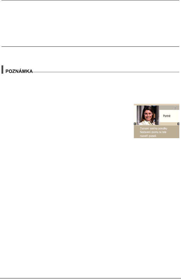 • Nastavení vybraného scénického režimu zůstává v platnosti až do výběru