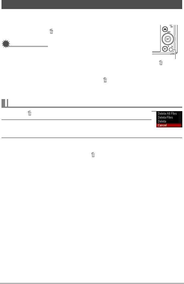 the camera’s “Ü Disabled” setting (page 109). You can delete files only while “Off”