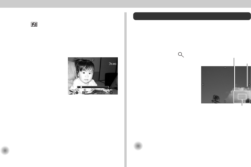 • 音声付き画像の音量調整は、再生/一時停止中に可能で