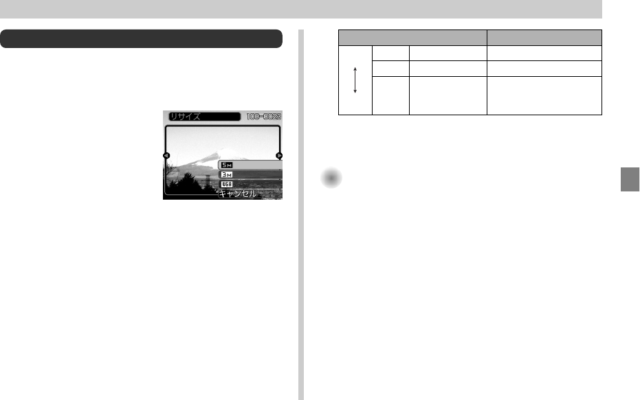 【왖】【왔】でリサイズ内容を選び、【SET】を押します。