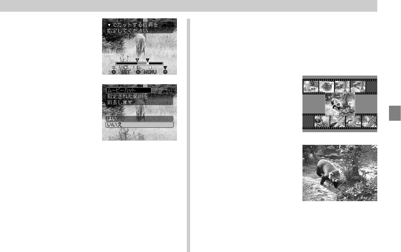 PLAYモードにして【왗】【왘】で素材にしたい動画を表示