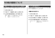 その他の設定について 6. 【왖】 【왔】で自宅の都市を選び、【SET】を押します。 • 日本で使う場合は“Tokyo”を選んでください。 7. 【SET】を押して、設定を完了します。 日付の表示スタイルを切り替える 画面に表示される日付の表示スタイルを3通りの中から選ぶこと ができます。 1. 【MENU】を押します。 ホームタイムの日時を設定し直す 1. 【MENU】を押します。 2. “設定”タブ→“日時設定”と選び、【왘】を押します。 3. 3. 【왖】 【왔】で設定内容を選び、【SET】を押します。 例)2005年12月24日 年/月/日:05/12/24 日付と時刻を合わせます。 【왖】 【왔】: カーソル(選択枠)の部分の数字を変えます。 【왗】 【왘】: カーソル(選択枠)を移動します。 【DISP】: 12時間表示と24時間表示の切り替えができます。 4. 【SET】を押して、設定を終了します。 136 2.