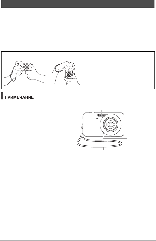 держите камеру, как показано на рисунке ниже; удерживайте её неподвижно,