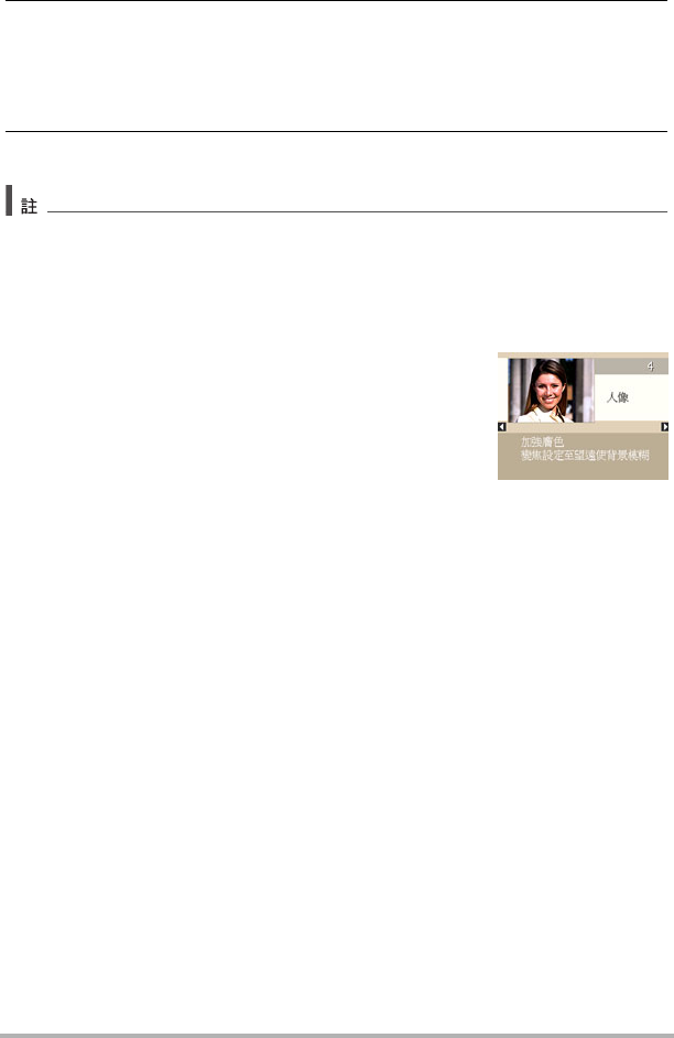 • 選擇其他場景之前,所選場景的設定將一直有效。