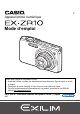 F Appareil photo numérique Mode d’emploi Merci pour l’achat de ce produit CASIO. • Avant de l’utiliser, veuillez lire attentivement les précautions figurant dans ce mode d’emploi. • Conservez le mode d’emploi en lieu sûr pour toute référence future. • Pour les toutes dernières informations sur ce produit, consultez le site EXILIM officiel http://www.exilim.