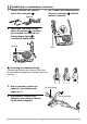 Fastsättning av nackremmen i kameran 1. 3. Lösgör remmen från spännet och ta loss remöglan . Spänne 2. För in änden av remmen genom ringen på remöglan och fäst remmen i spännet. Fäst öglan som sitter i andra änden av remmen i remhålet på ena sidan av kameran och den borttagna öglan i remhålet på andra sidan. Remhål Ring . Justering av remmens längd Längden på remmen kan justeras, så att den kan användas antingen som nackrem eller som axelrem. 1.