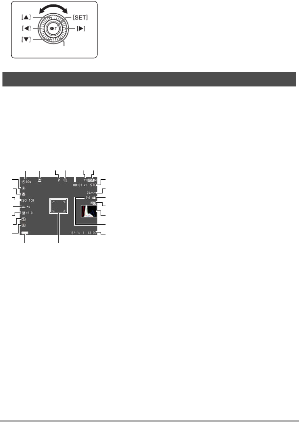 • Skärmexemplen i detta avsnitt är avsedda att visa var på skärmen olika indikatorer