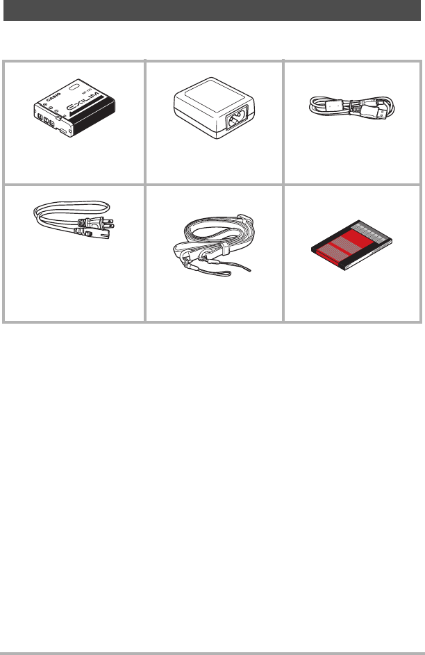 Kontrollera vid uppackning av kameran att samtliga tillbehör som visas nedan finns