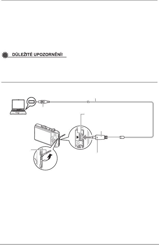 Baterie vložená ve fotoaparátu se nabíjí při každém připojení fotoaparátu přímo