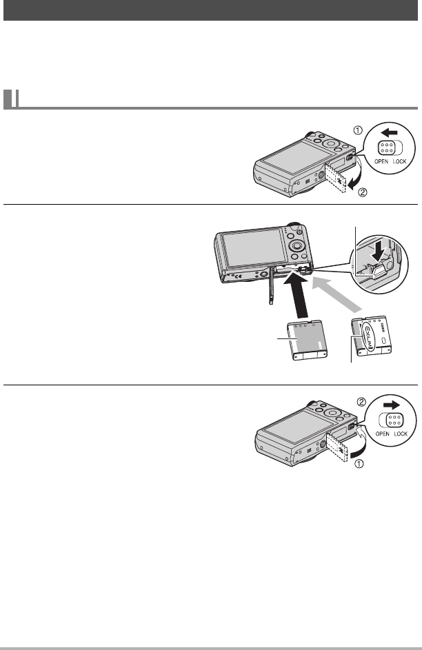 poniższe kroki, aby wkładać akumulator do aparatu i go ładować.