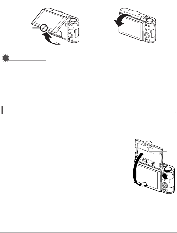 • When returning the monitor screen to the back of the camera, take care so you do
