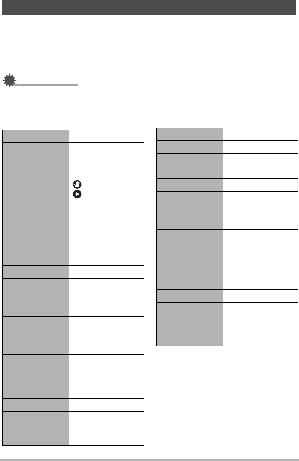 • A dash (–) indicates an item whose setting is not reset or an item for which there is