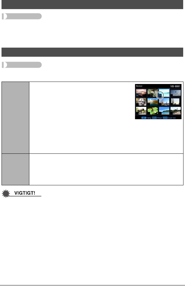 • Bemærk, at selv om en fil er beskyttet, slettes den, hvis du udfører en formatering