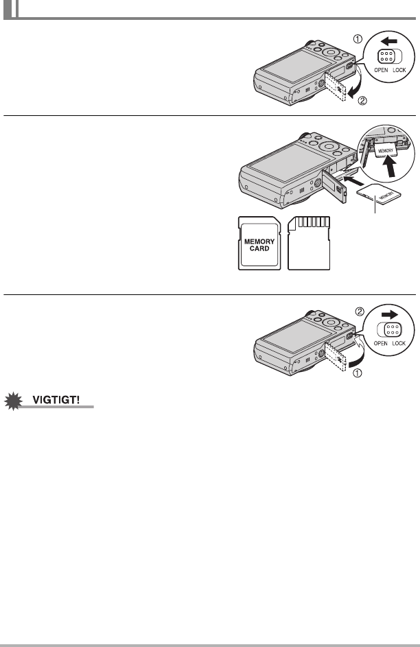 • Sæt aldrig andet end et understøttet hukommelseskort (side 23) ind i rummet til