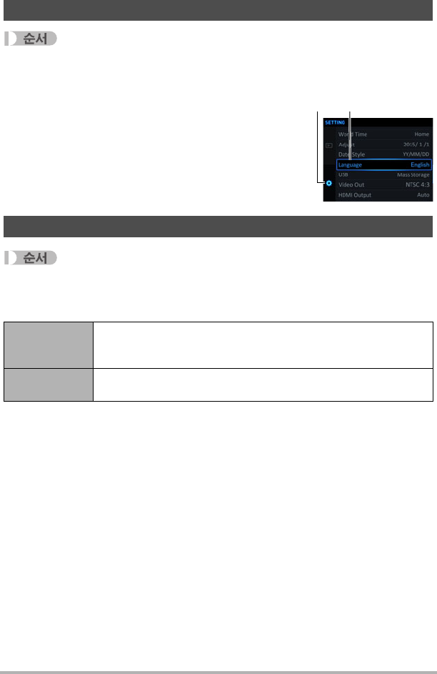 • 일부 지역에서 판매된 카메라 모델은 표시 언어 선택이 지
