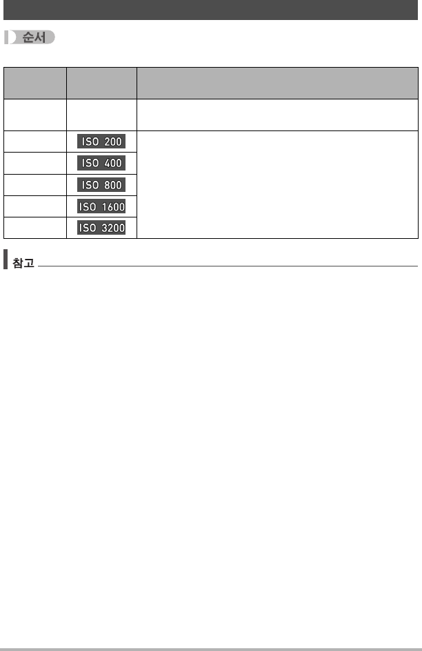 "ISO감도" 설정(45페이지)으로 지정한 ISO감도 설정을 사