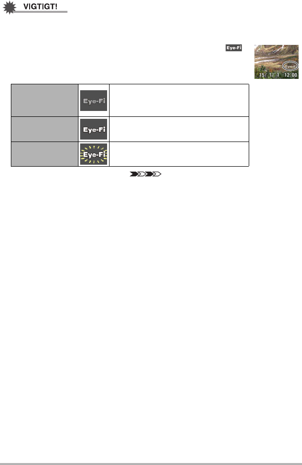 • Sætter du et Eye-Fi-kort i kameraet, vises Eye-Fi-indikatoren