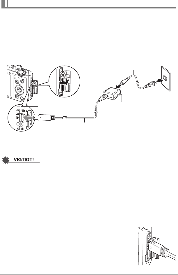Adapteren gør det muligt at oplade batteriet, mens det er sat ind i kameraet.